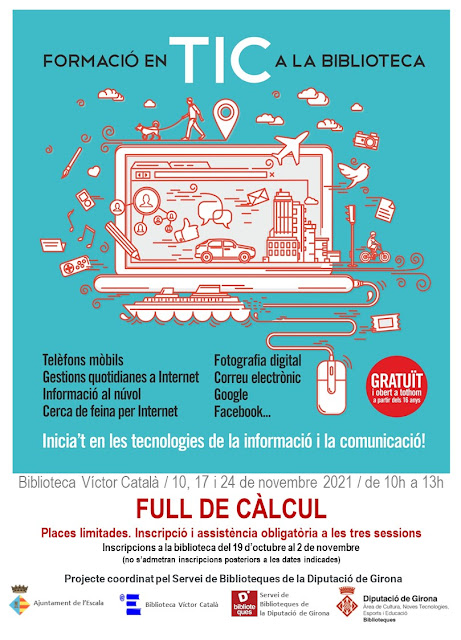 Obertes les inscripcions pel curs de formació TIC a la biblioteca, pels dies 10, 17 i 24 de novembre. En aquesta ocasió, curs sobre "Full de càlcul" de nivell bàsic. Assistència obligatòria els tres dies de formació. Gratuït.